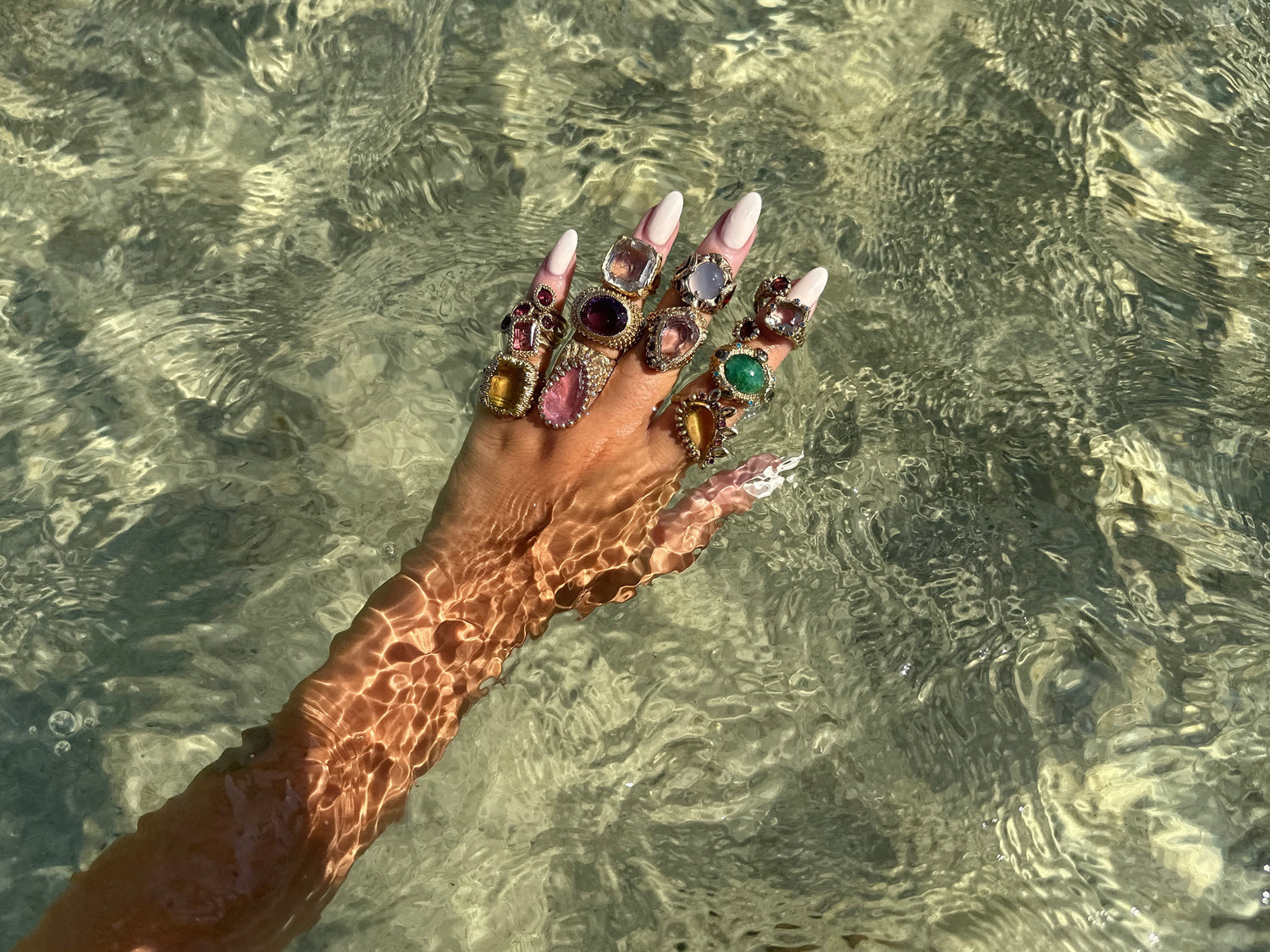 Aneís esprime il suo spirito originale e all’avanguardia attraverso combinazioni ricercate con l’utilizzo di pietre colorate e tagli speciali.