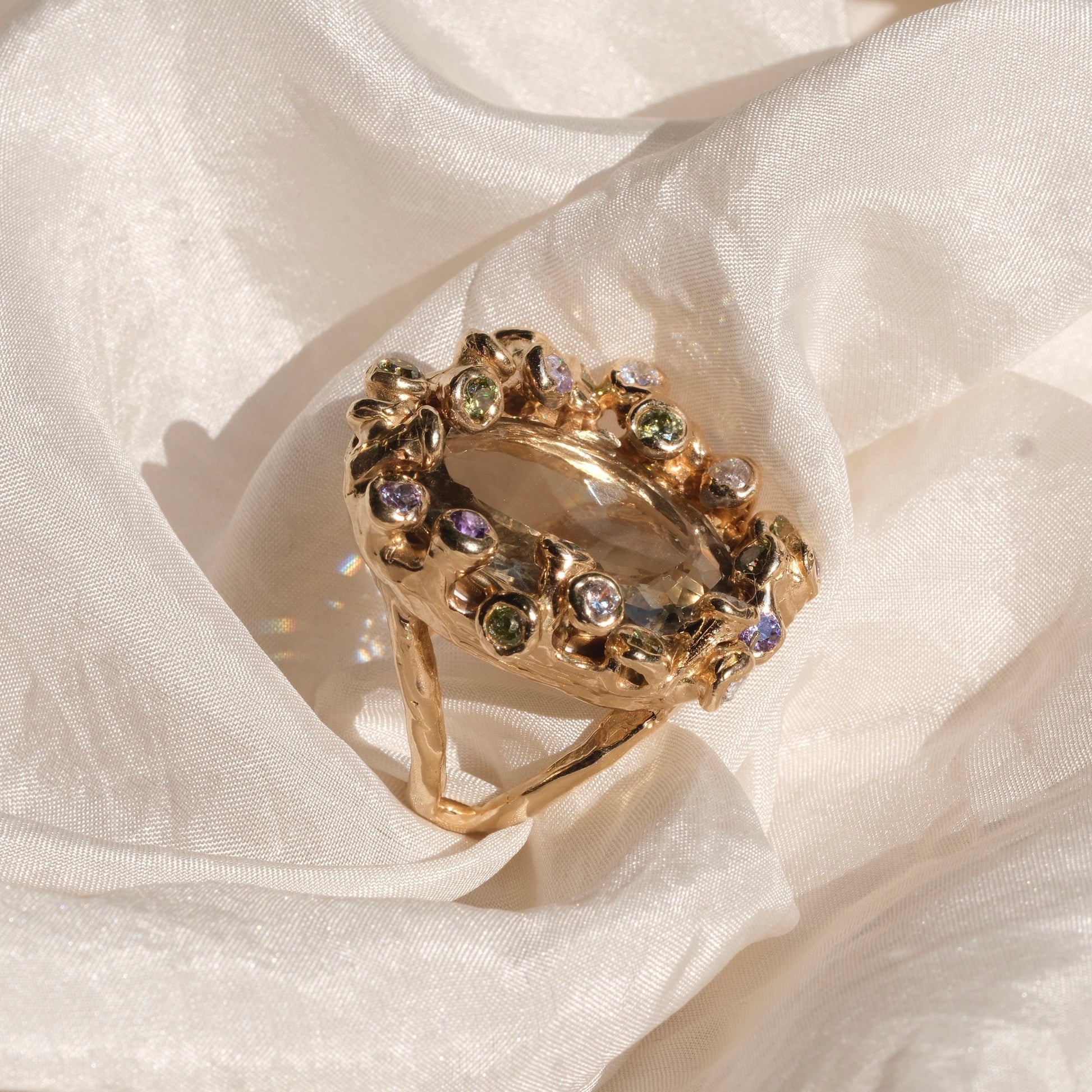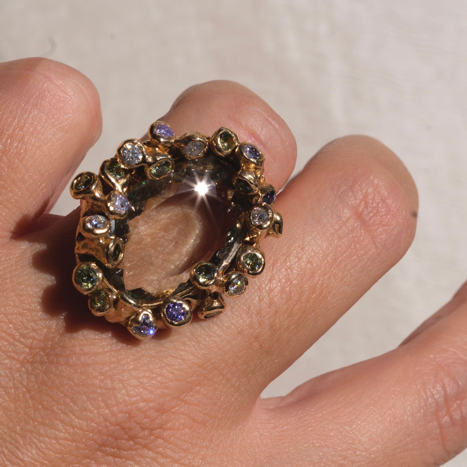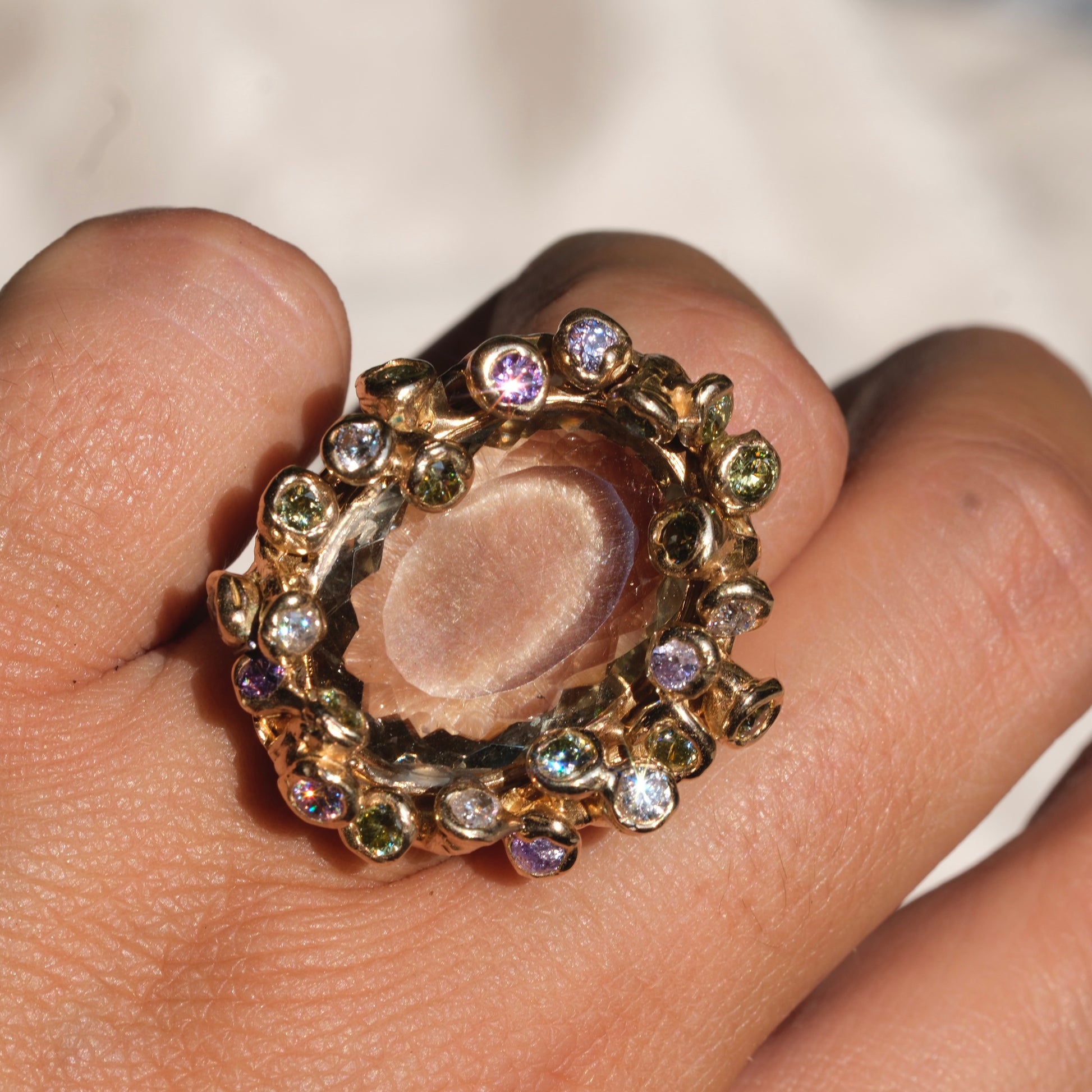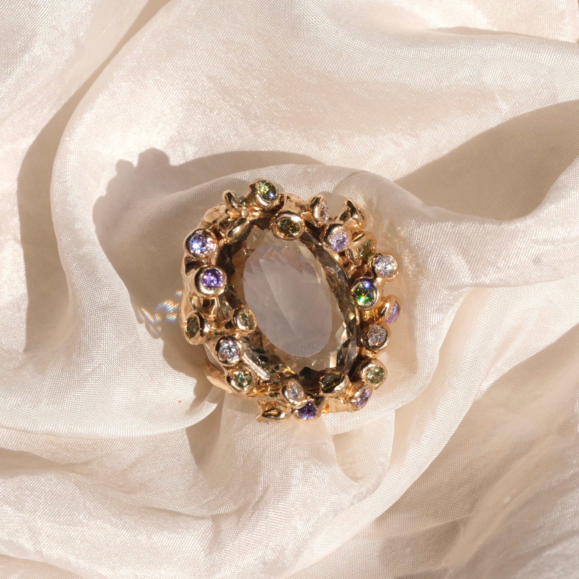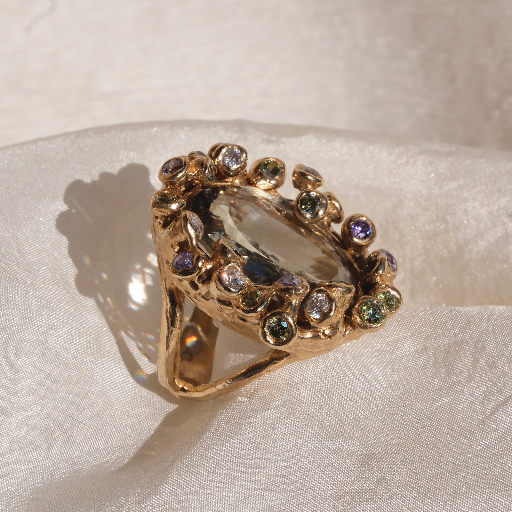 Anello realizzato in bronzo giallo con Prasiolite (16.79ct) e Zirconi Multicolor