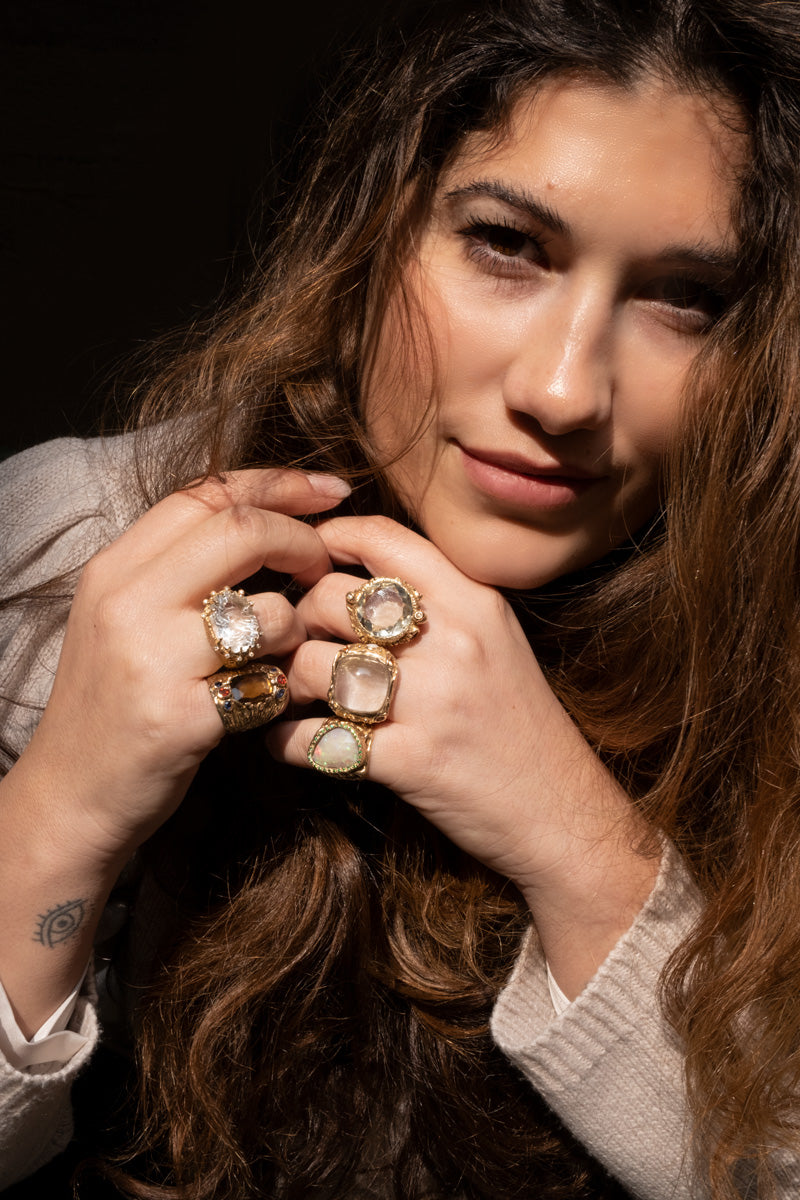 Aneís esprime il suo spirito originale e all’avanguardia attraverso combinazioni ricercate con l’utilizzo di pietre colorate e tagli speciali.